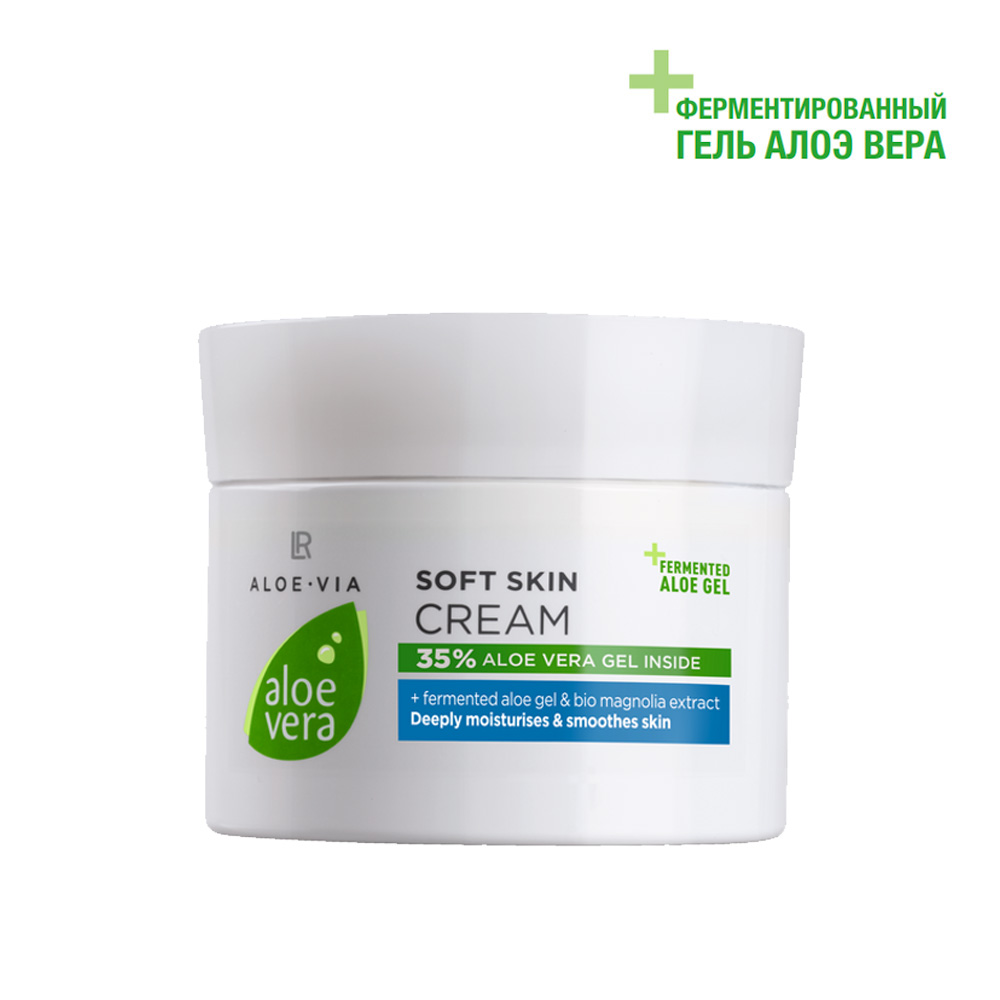 Aloe Vera Мягкий крем-уход для лица и тела с ферментированным гелем Алоэ Вера, 100 мл - делает кожу особенно гладкой и приятной на ощупь. Универсальное средство для ухода за телом быстро впитывается, кожа после применения становится мягкой и нежной. Экстракт магнолии придает коже более ухоженный вид.
