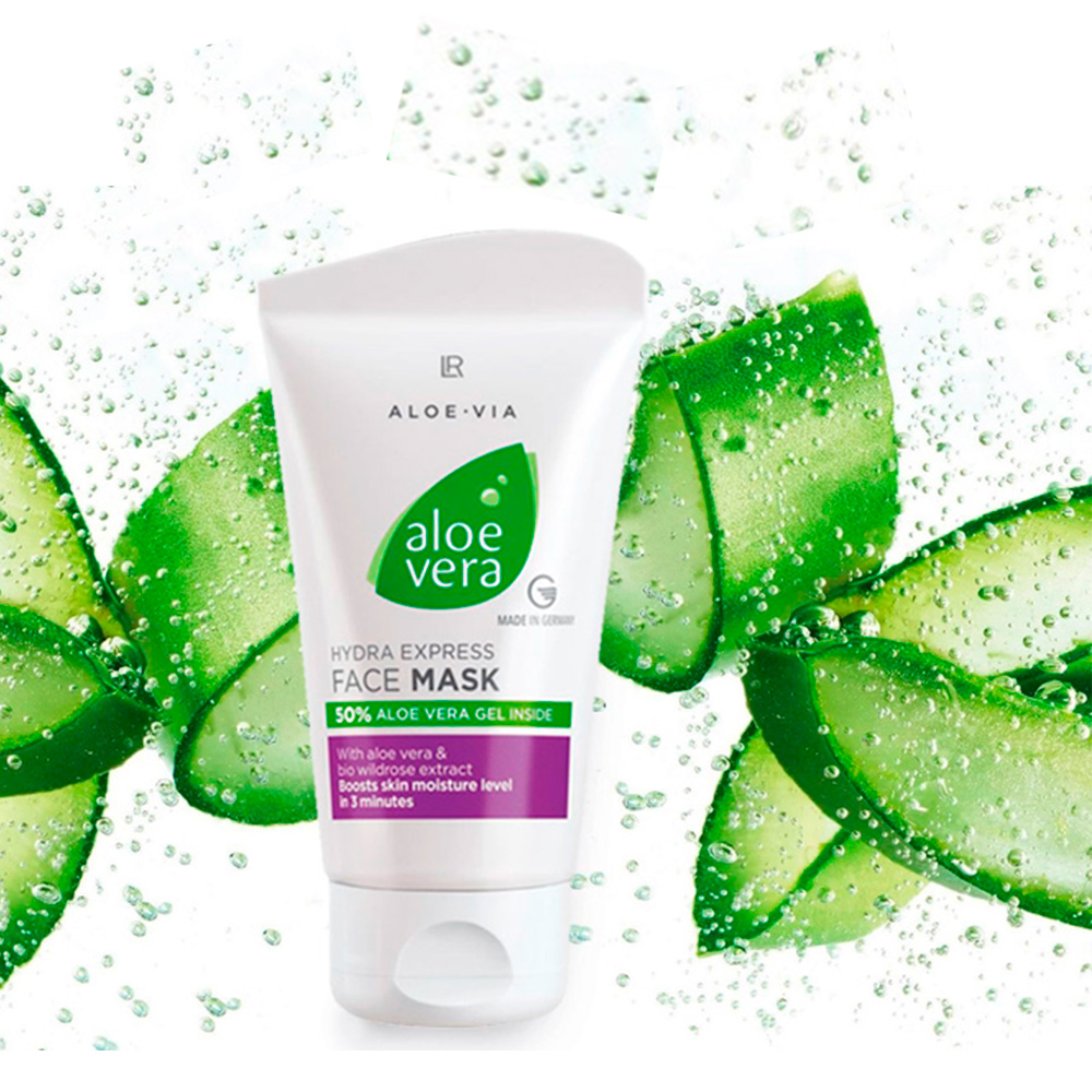 Освежающая экспресс-маска для лица Aloe Vera, 75 мл - маска в виде легкого крема дарит коже сияющий вид и оставляет на ней ощущение свежести. Комбинация из геля Алоэ Вера, экстракта шиповника, Aquaxyl и Aquapront™ увлажняет до 95% всего за 3 минуты* и улучшает эластичность кожи.