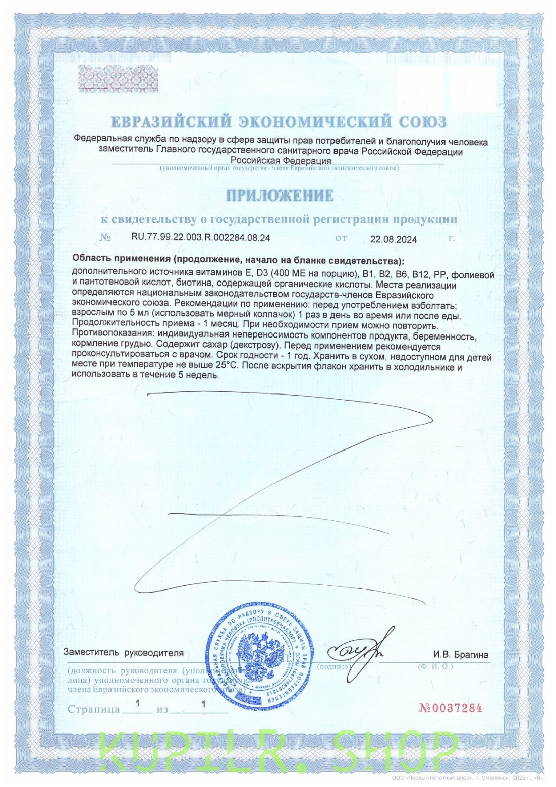 ХРАНЕНИЕ: Продукт следует хранить в недоступном для детей месте. Хранить при температуре не выше 25°С. После вскрытия плотно закрывать и хранить в холодильнике не более 5 недель. Перед употреблением встряхнуть.