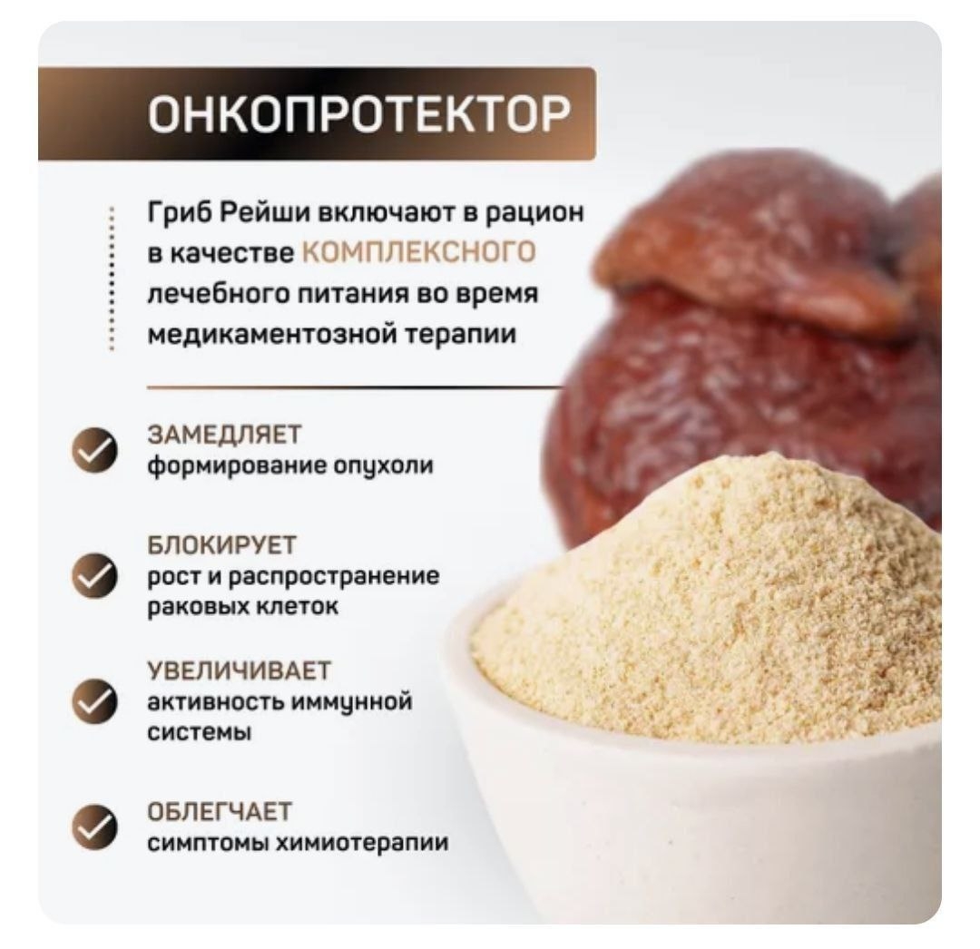 Полисахариды Рейши используются для укрепления иммунной системы у онкологических больных, проходящих лучевую или химиотерапию. Исследования показывают, что они могут замедлить рост опухоли и стимулируют гибель раковых клеток.